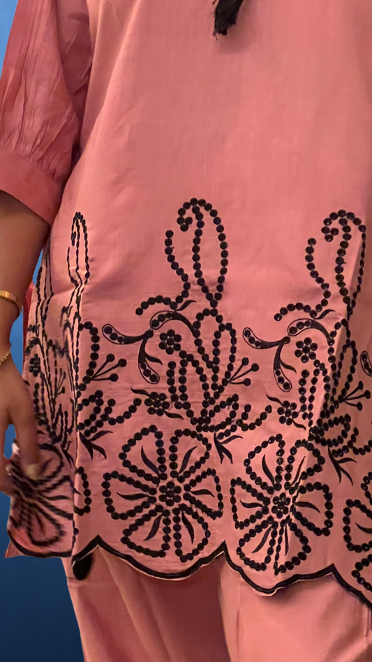Tea Pink - Eyelet Embroidery Solid Co-ord Set