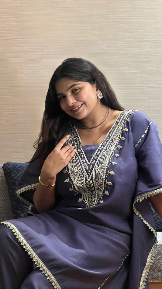 Haze Purple Silver Gota Patti Kaftan Set