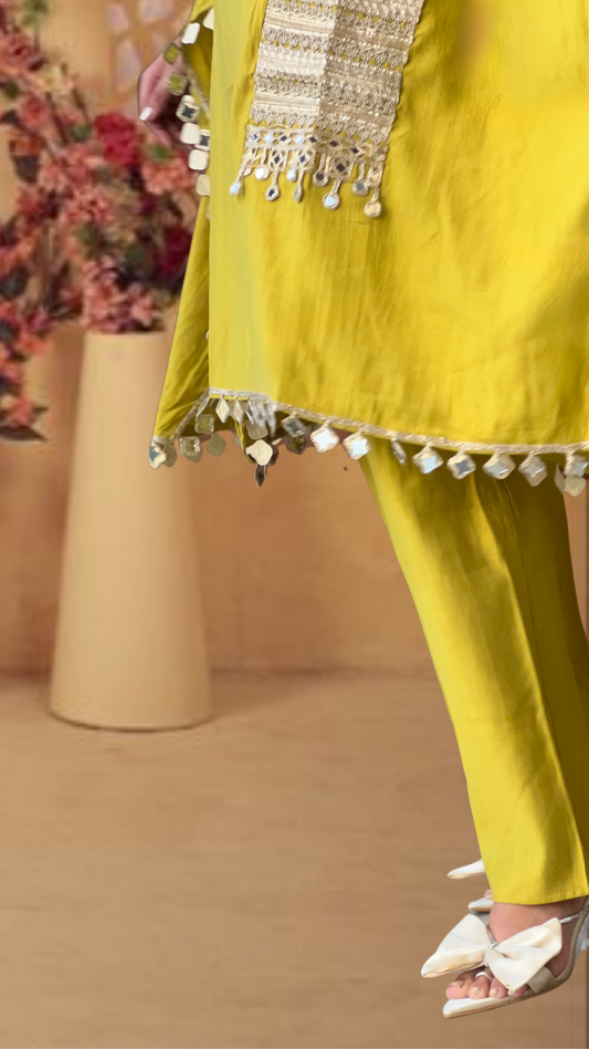 Citrine Gold Mirror Work Kaftan Set